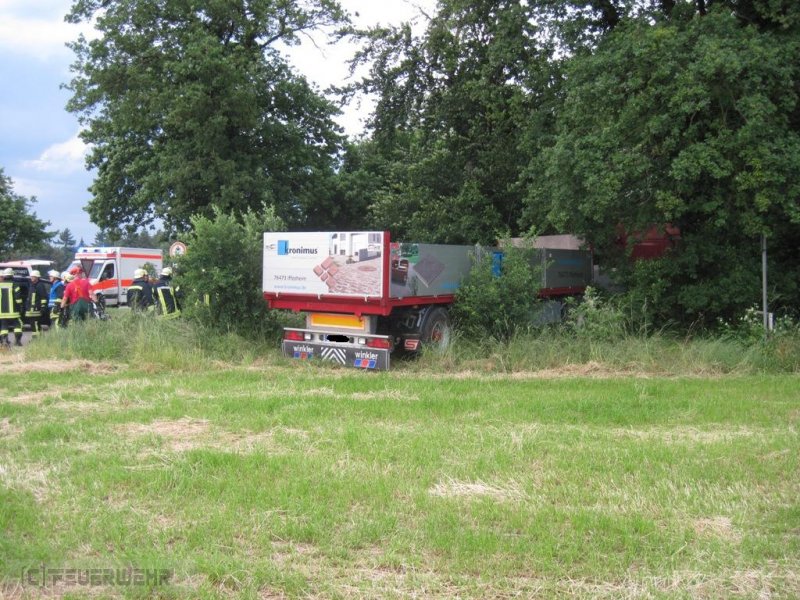 Beim Eintreffen der FFH wurde festgestellt dass ein LKW von der Fahrbahn abgekommen ist und komplett im angrenzenden Wald liegen geblieben war. Der Fahrer wurde bewusstlos aus dem Führerhaus gerettet.