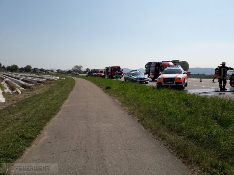 Die ILS Mittelbaden alarmiert "ABC1 - Kraftspur nach VU" auf der L75 - Kreuzung Dieter-Rückle-Strasse. Die Einsatzstelle wurde mit Bindemittel eingedämmt und bis zum Eintreffen der alarmierten Fachfirma abgesichert. An der Einsatzstelle waren ebenfalls Polizei und Rettungsdienst.